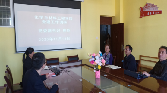 2020年11月16日下午,党委副书记焦艳深入教科院、食药学院、生环学院、化材学院调研指导党建工作。