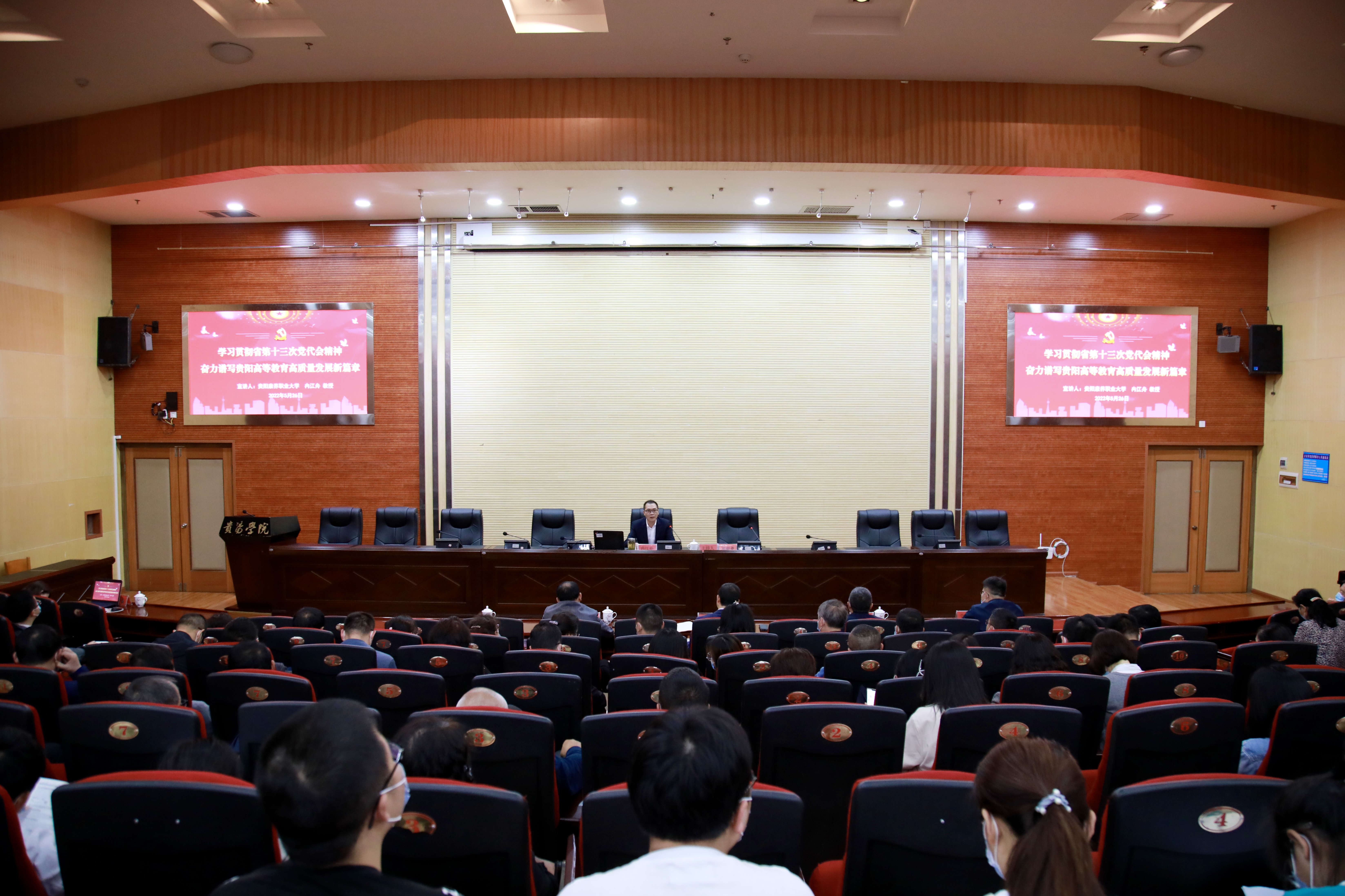 宣讲会上,冉江舟以《学习贯彻省第十三次党代会精神奋力谱写贵阳高等教育高质量发展新篇章》为题,围绕省第十三次党代会精神的主题,全面深入解读了省第十三次党代会庄重宣示衷心拥护“两个确立”、忠诚践行“两个维护”的政治立场的重大意义;从八个方面的重大成就、六个方面的经验详细阐释了过去五年贵州取得的历史性成就和经验启示;讲述了今后五年总体要求和战略目标定位、贵州高质量发展重点任务以及学习贯彻落实会议精神的要求。