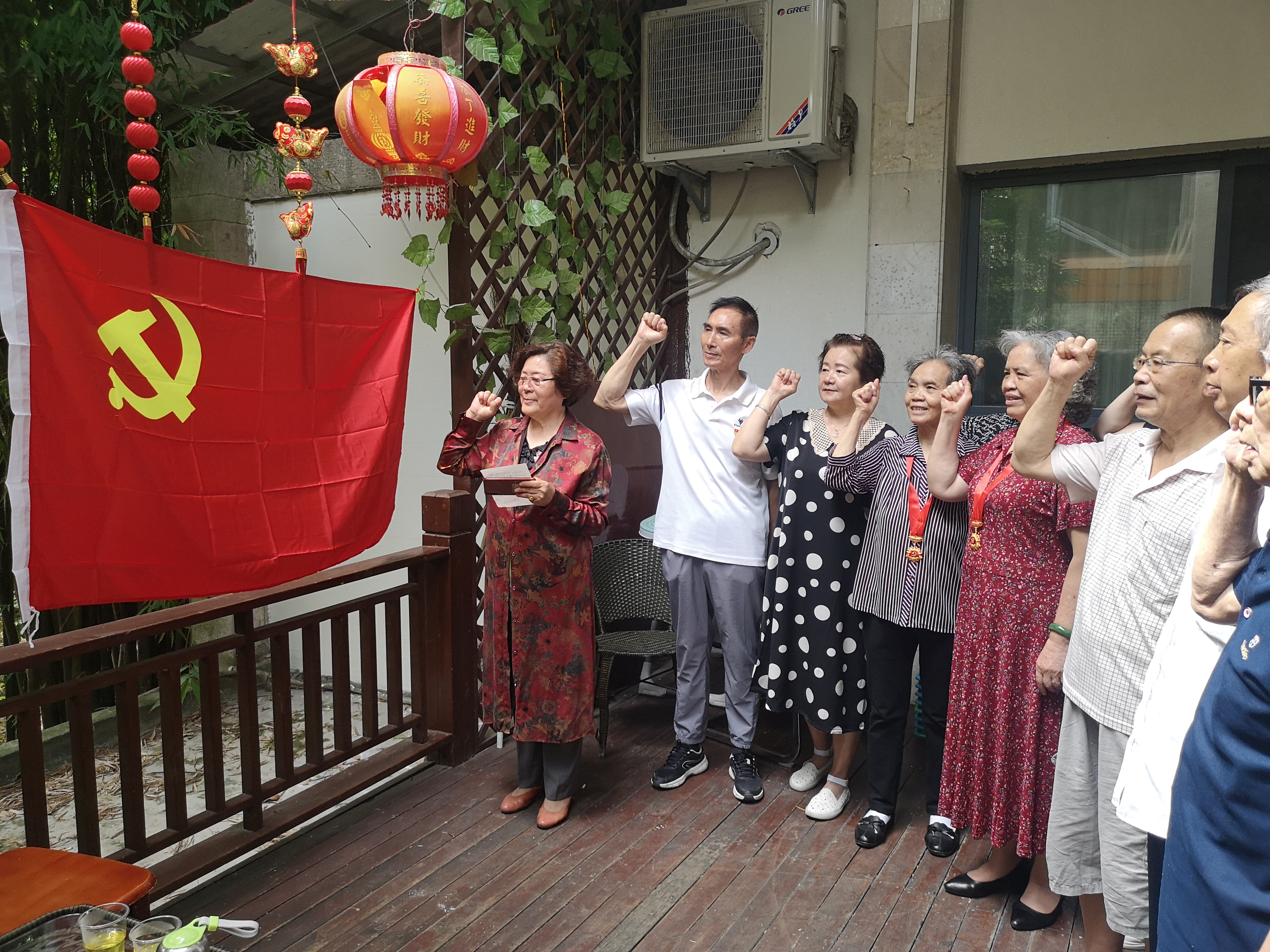 同时,我校离退休处还组织开展退休党员主题党日活动。活动中,退休党员同志右拳高擎,神情庄重,面对鲜红的党旗重温了入党誓词,再次表达了自己永远跟党走、为党的事业奋斗终身的决心和愿望。